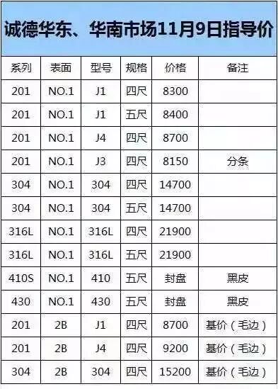 201-j1窄带价格8100元/吨,201-j3窄带价格7900元/吨,201-j4窄带价格8600元/吨,
