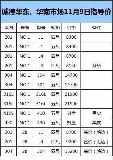 (304、316L下调100,430平盘)