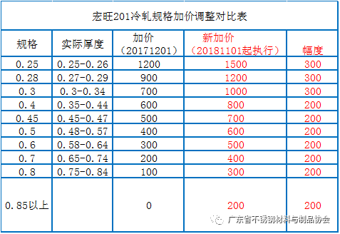 继昨日北海诚德发布201冷轧最新加价表后,宏旺、宝钢德盛也相继发布最新加价表,具体如下: