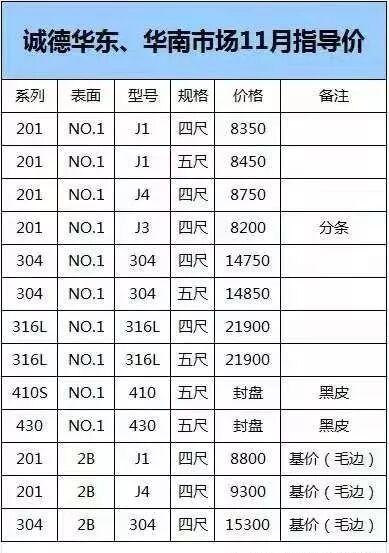 据北海诚德消息,其出台最细201冷轧新加价表,据悉,此加价表从2018年11月1日起执行,304加价不变,具体如下: