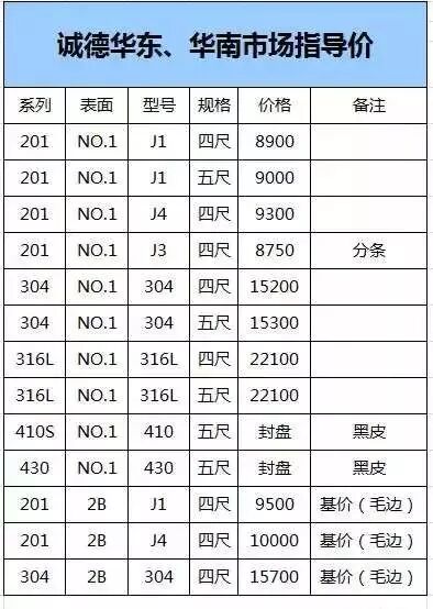 佛山、无锡、山东、福建201:四尺9200 ;304 四尺/15600