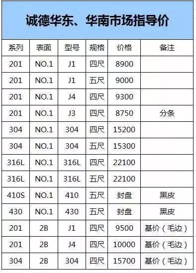 佛山、无锡、山东、福建201:四尺9300 ;304 四尺/15500