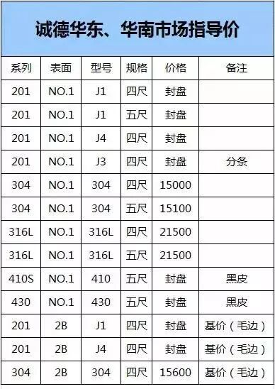佛山、无锡、山东、福建201:四尺9000 ;304 四尺/15500