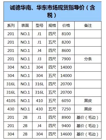 佛山、无锡、山东、福建201:四尺8500 ;304 四尺/14100