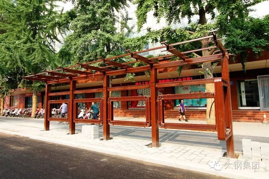 你知道吗?这些“古装”公交候车廊都是不锈钢材质,全部由太钢不锈钢工业园区设计制造安装。