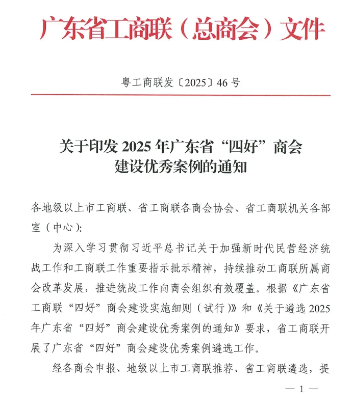 近日,广东省工商联印发了《关于印发2025年广东省“四好”商会建设优秀案例的通知》,经省工商联遴选、提交驻会主席办公会议审议通过并公示,确定全省105家商会工作案例为2025年广东省“四好”商会建设优秀案例,其中省级商协会15家,广东省不锈钢材料与制品协会榜上有名。