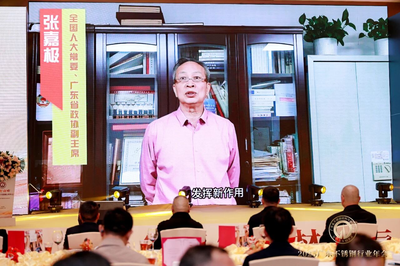 全国大人常委、广东省政协副主席张嘉极在视频讲话中对2025广东不锈钢行业年会的举办表示热烈祝贺,向全体会员表示诚挚问候。他指出,广东省不锈钢材料与制品协会第三届理事会两年来在林泽榆会长的带领下,注重政治引领、大局意识,职责定位准,工作成绩好,得到广大会员的充分认同和支持。