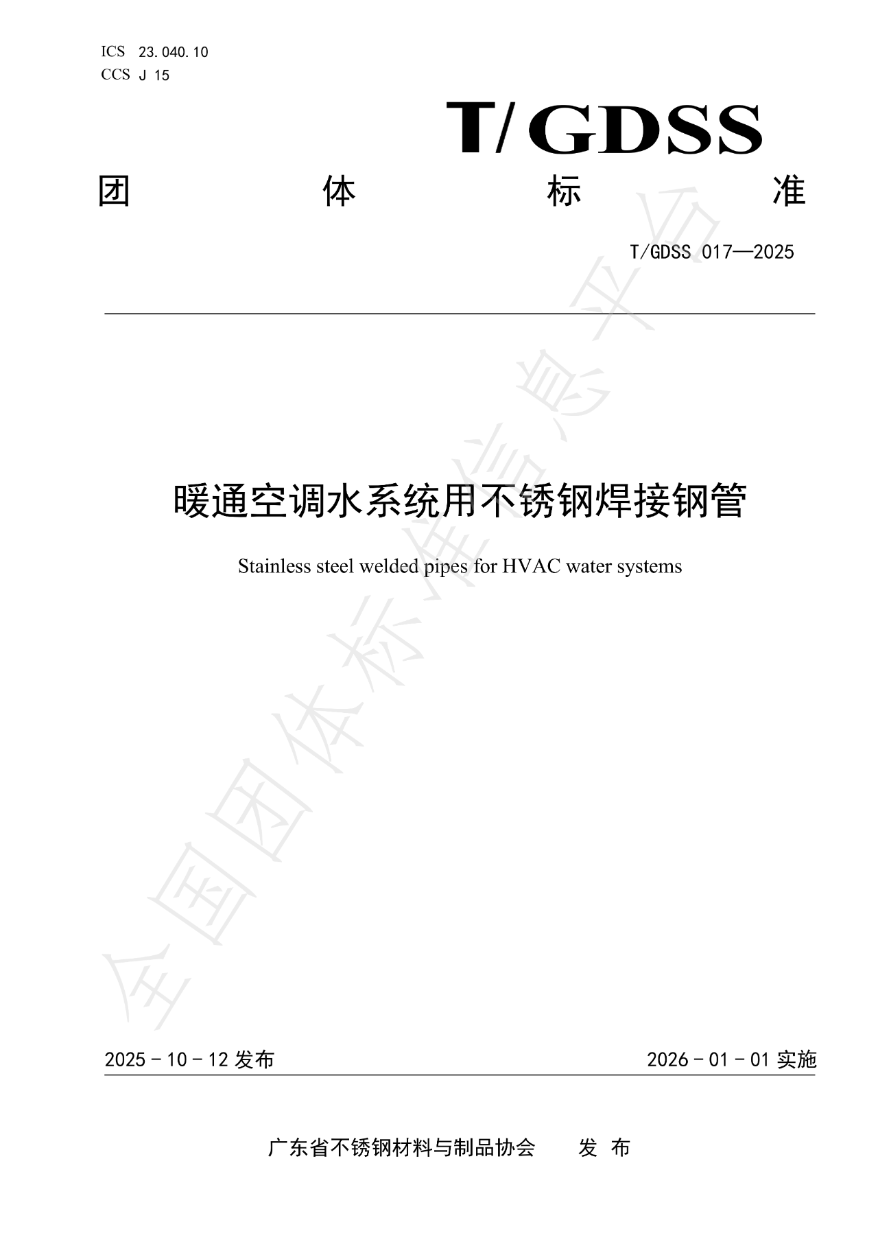 《暖通空调水系统用不锈钢焊接钢管》团体标准