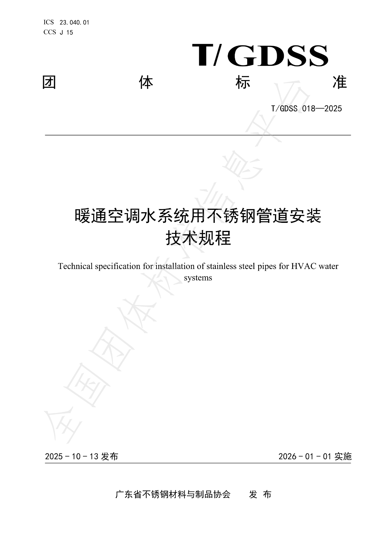 《暖通空调水系统用不锈钢管道安装技术规程》团体标准