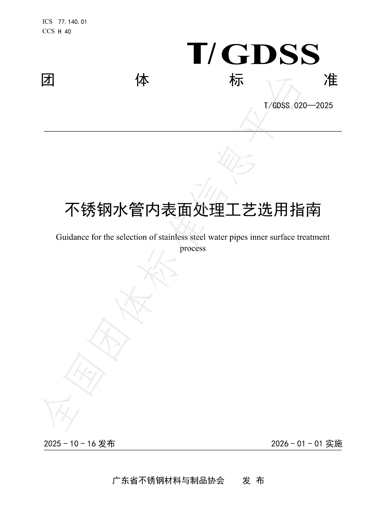 《不锈钢水管内表面处理工艺选用指南》团体标准