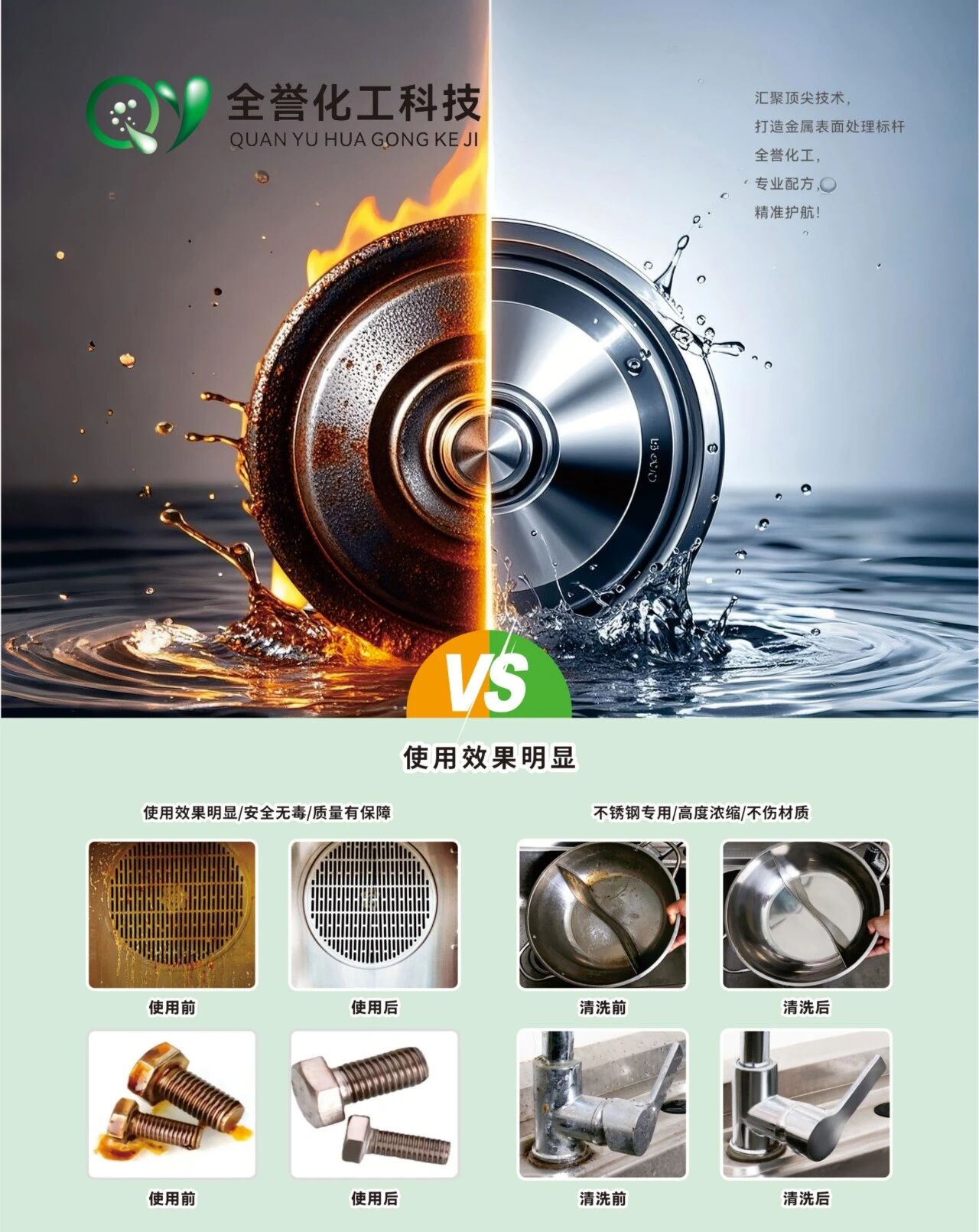 中山市全誉化工科技有限公司是广东省不锈钢材料与制品协会会员单位,是一家汇聚了国内外一流专业技术研发团队,专业从事研发、生产除蜡水、五金抛光剂、金属除油剂、锰系磷化剂、防锈剂等产品的高科技企业。