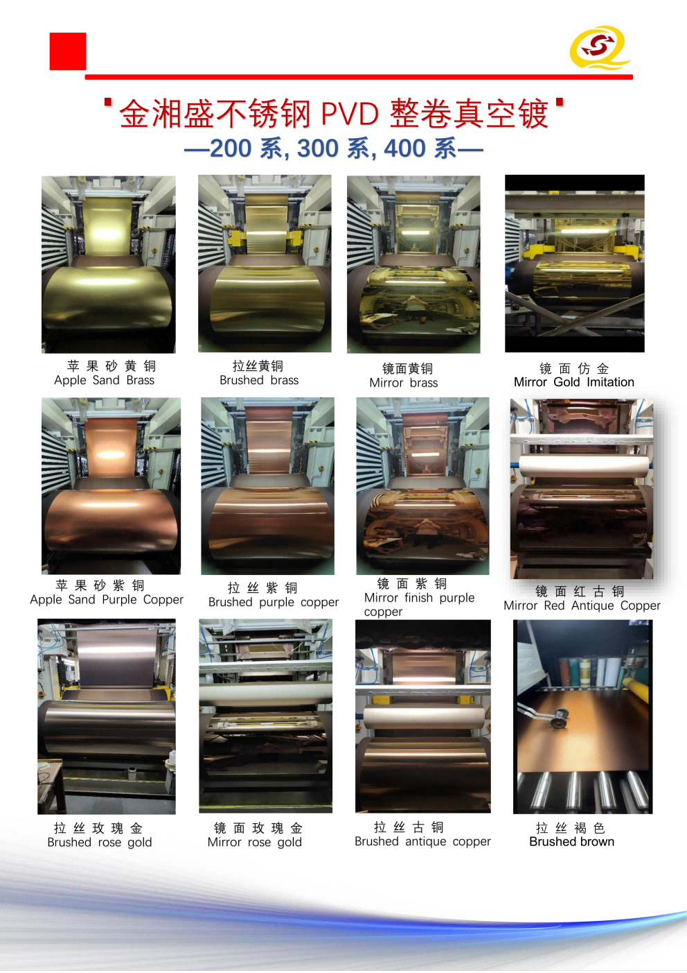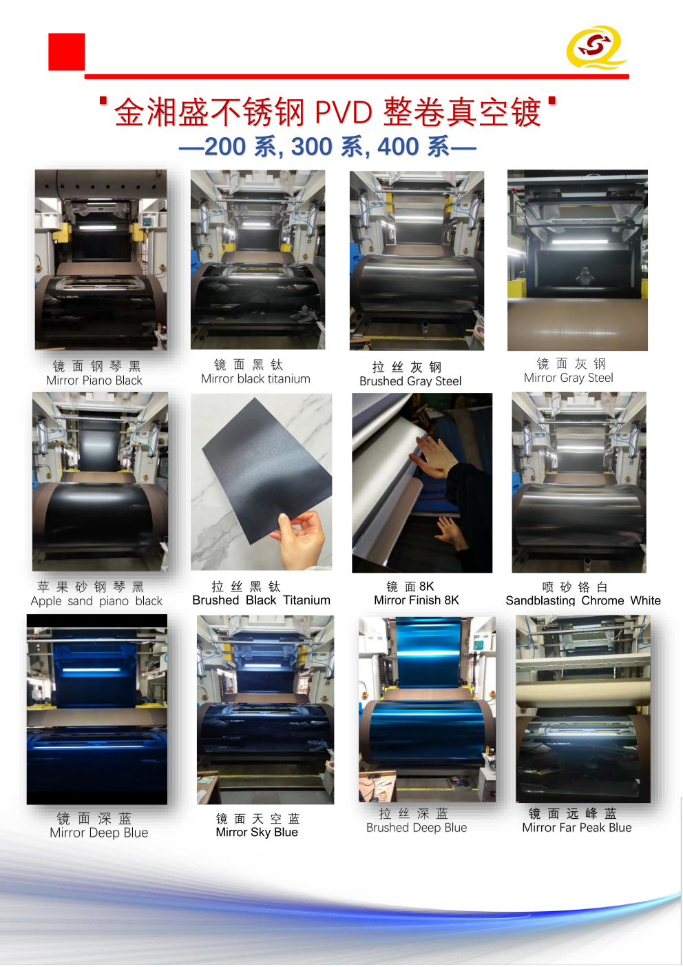 目前,该公司可对不锈钢等金属材料进行整卷表面加工和镀色,所生产的产品主要应用于家电、电梯、汽车装饰亮条、室内外装饰、幕墙、光学仪器、灯具等行业,具有良好的市场前景。