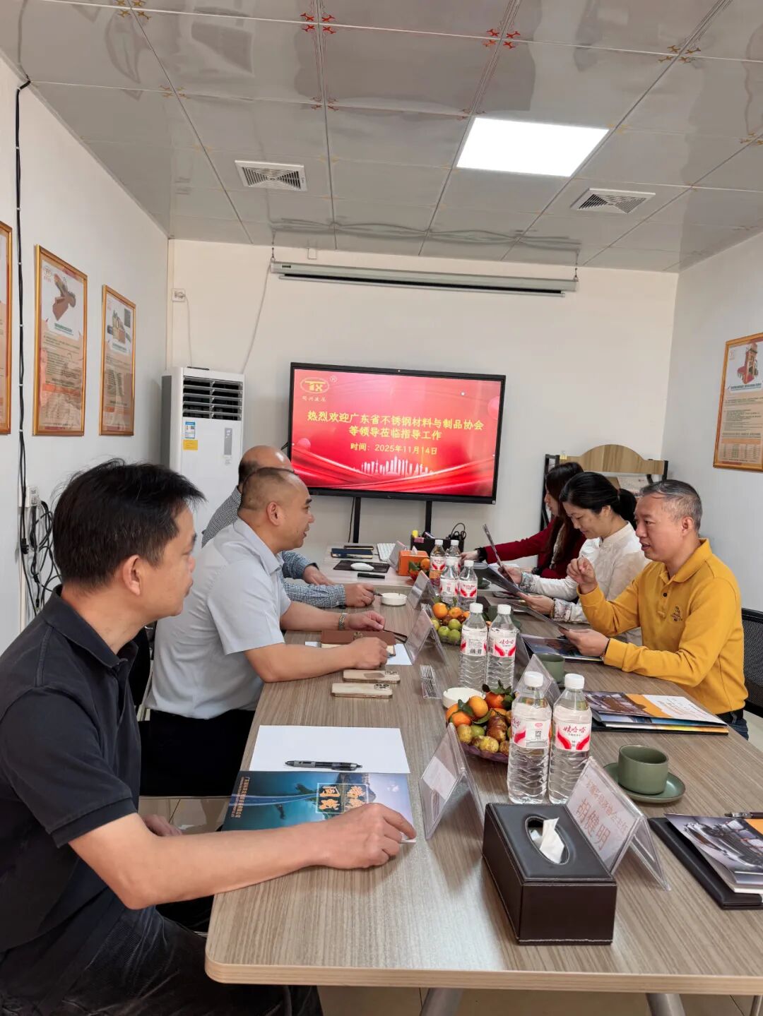 11月14日,广东省不锈钢材料与制品协会会长林泽榆、秘书长黄耿燕和会长助理陈嘉泳走访了会员单位⼴东同兴液压智能装备有限公司,受到林金才董事长的热情接待,销售总监廖伟忠、售后总监韦敏敏等陪同座谈。