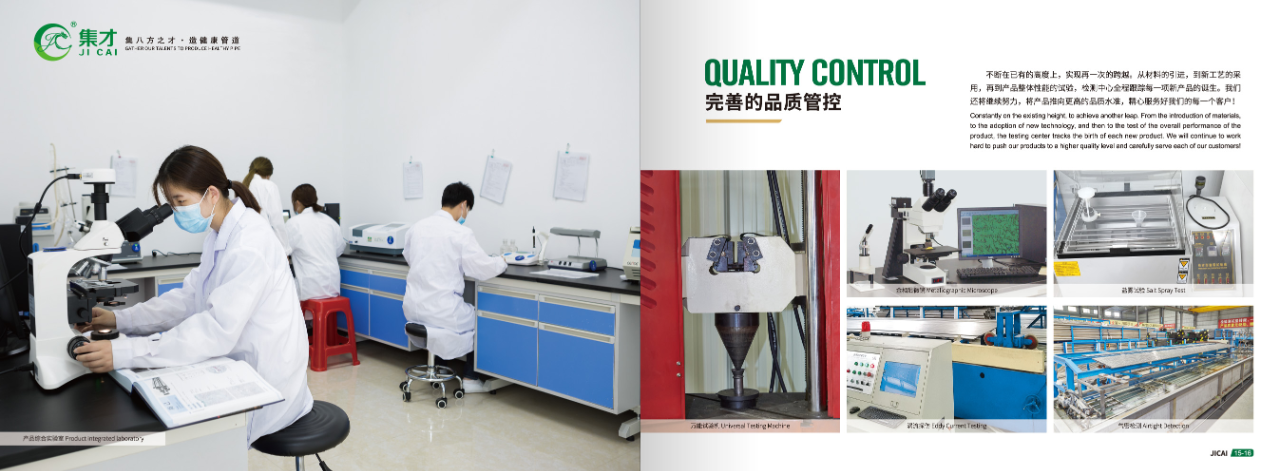 集才管益产品严格按照国标(GB)I系/II系及欧标(EN)执行。经国家审批,已荣获广东省涉及饮用水卫生安全产品卫生许可证,并通过了广东产品质量监督检验研究院和广东省疾病预防控制中心检验,以及IS09001:2008国标质量管理体系认证。