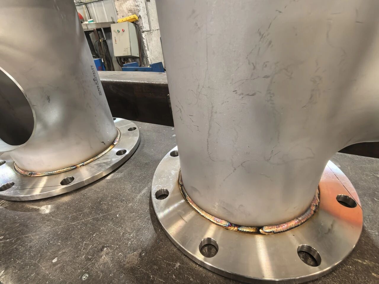 交流中,冯大剑总经理向黄秘书长一行介绍了公司生产经营概况和产品服务,当前公司拥有14米折弯机、智能等离子焊机等设备,可满足各种定制化生产需求,核心产品为大口径工业大厚管及各种非标异形管道、预制流体管道等。冯总指出公司逐步探索差异化发展、专精特殊工艺及坚持做好服务等经营理念。