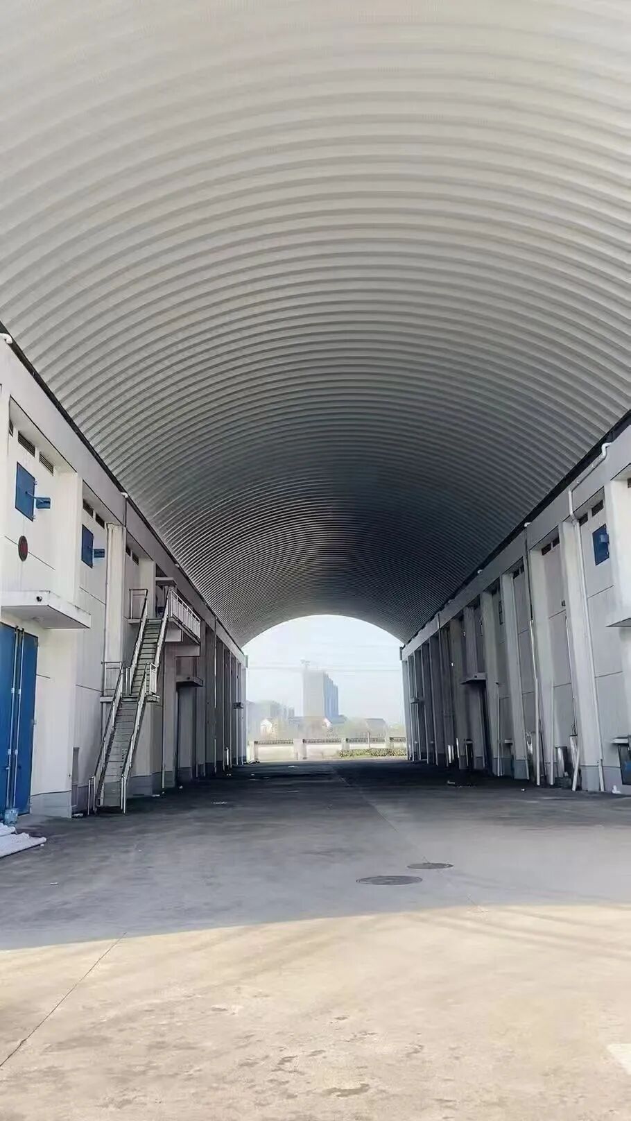 据辉得利董事长陈淦光介绍,辉得利新型不锈钢屋顶拱形建筑工程瓦拱形屋顶-无梁拱形棚空间宽阔,跨越能力大造价低,投资少,自重轻、外形美观无需维护,自然防水跨度可达4-39米,机械锁边链接。应用于体育馆、展览馆、交易市场、储存仓库、车库机库、粮库罩棚等。
