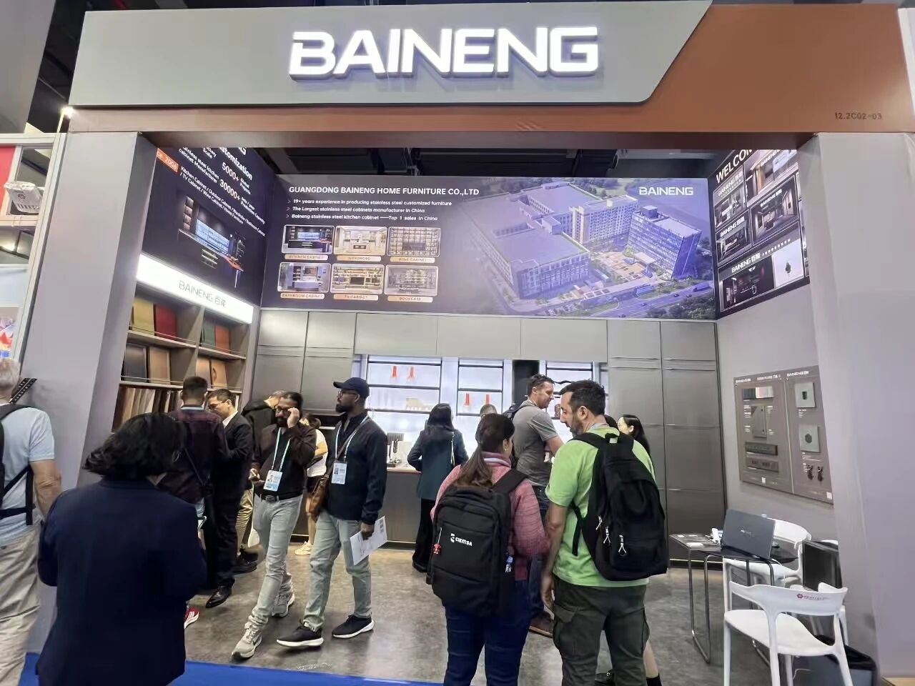 在火爆的人气背后,是百能基于工业4.0理念构建的智能制造体系与完善的产品布局。百能完成了从单一橱柜向全屋八大空间系统的全面升级,涵盖橱柜、衣柜、阳台柜、卫浴柜、酒柜、书柜、门厅柜、电视柜,为全球用户提供风格一体、品质统一的完整家居体验。与此同时,百能深度融合简约现代美学与不锈钢性能优势,彰显出中国品牌在制造、设计与创新上的全球竞争力。
