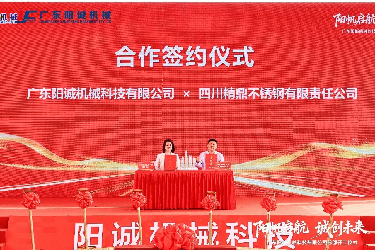 仪式上,广东阳诚总经理陈榕分别与四川精鼎、浙江天目、佛山源再嵘等三家客户负责人签署了合作协议,并为助力阳诚发展的狮山镇有关部门、广东省不锈钢材料与制品协会、南海区机械装备行业协会授予感谢锦旗。