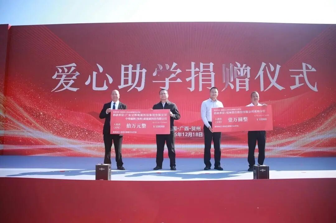 值得一提的是,仪式上宝辉集团董事长陈淦光代表广东辉得利不锈钢、宝辉能源向贺州市八步区信都希望小学捐赠助学爱心资金十万元,彰显了广东不锈钢企业的社会责任。