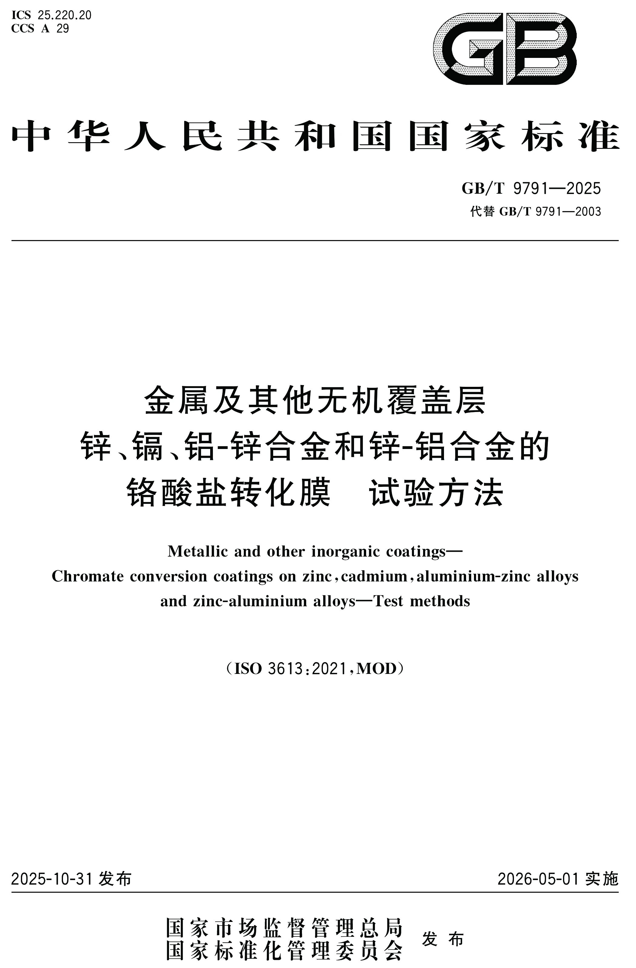 近日,由国家标准化管理委员会批准发布的《GB-T 9791-2025 金属及其他无机覆盖层锌、铝、锌-铝合金、铝-锌合金的铬酸盐转化膜试验方法》国家标准正式落地,该标准将于2026年5月1日起全国实施。广东省不锈钢材料与制品协会副会长单位广东凯盟钝化防锈技术有限公司作为核心参编单位,全程深度参与标准起草、论证与修订,彰显了在钝化防锈领域的标杆地位。