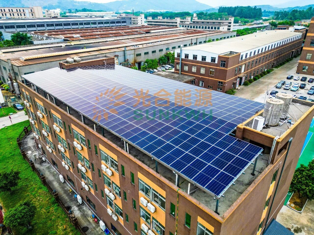 该项目位于佛山里水,采用棚架式设计安装,立柱选用120×120cm规格镀锌铝镁材质,光伏覆盖面积约2700㎡,楼面利用率高;共安装1023块隆基655W高效组件,发电效果优异。