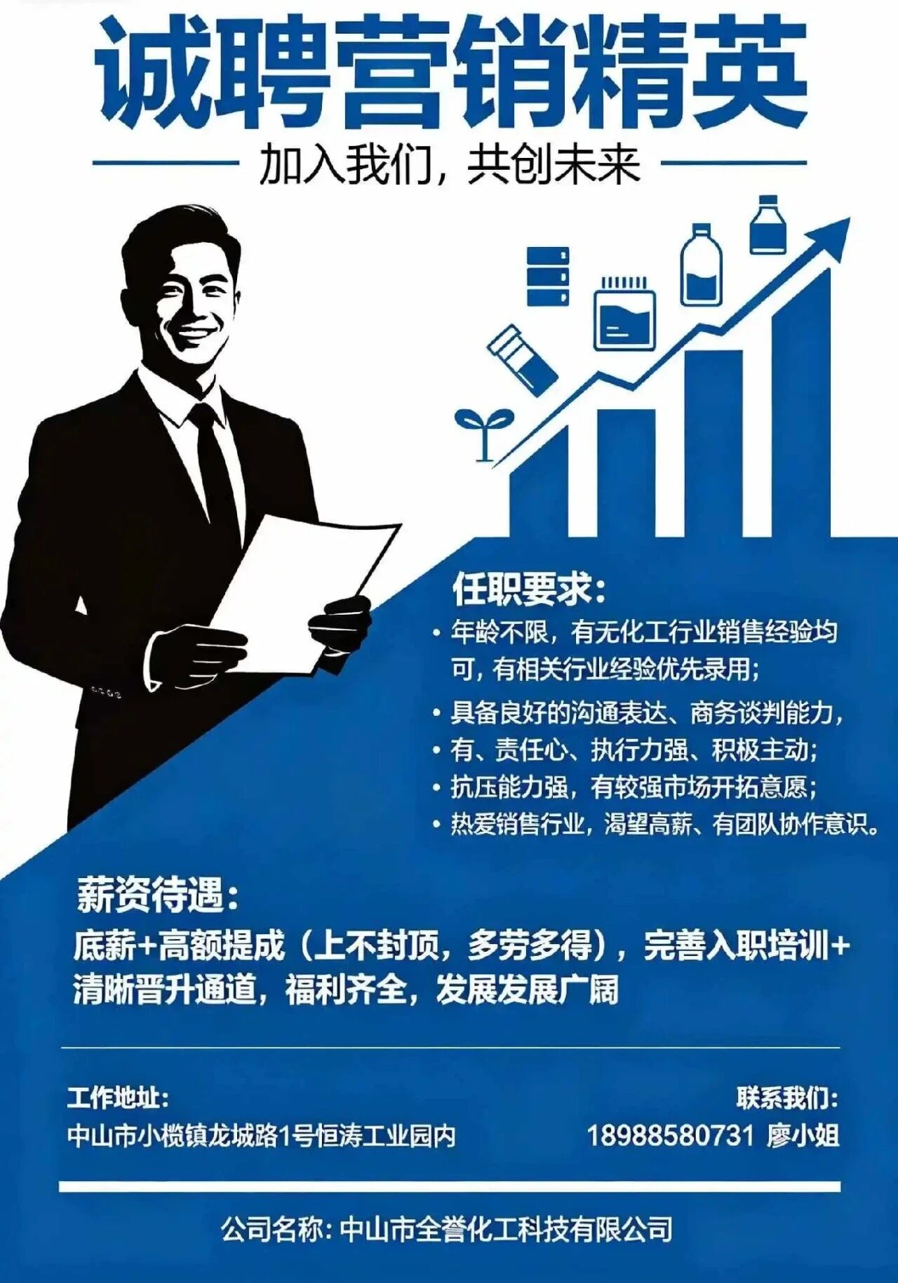 中山市全誉化工科技有限公司是广东省不锈钢材料与制品协会会员单位,现因发展需要诚聘营销精英及生产工:
