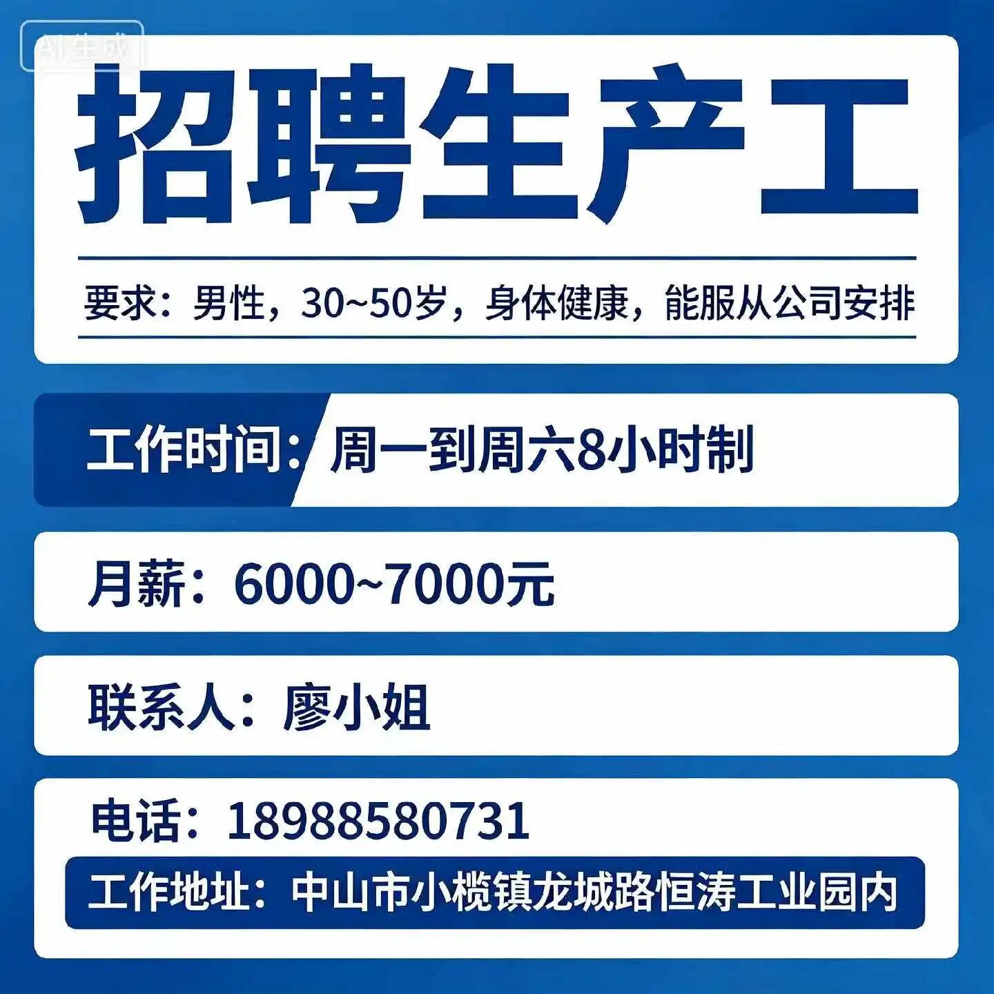 中山全誉诚聘营销精英及生产工