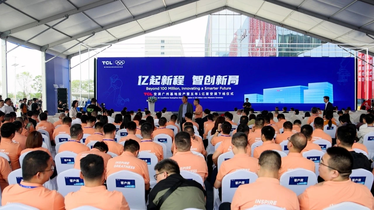 3月28日,位于广州南沙区大岗先进制造园区的TCL空调广州全球智能制造领航基地举办“亿起新程、智创新局”投产仪式暨五年1亿套空调下线仪式。