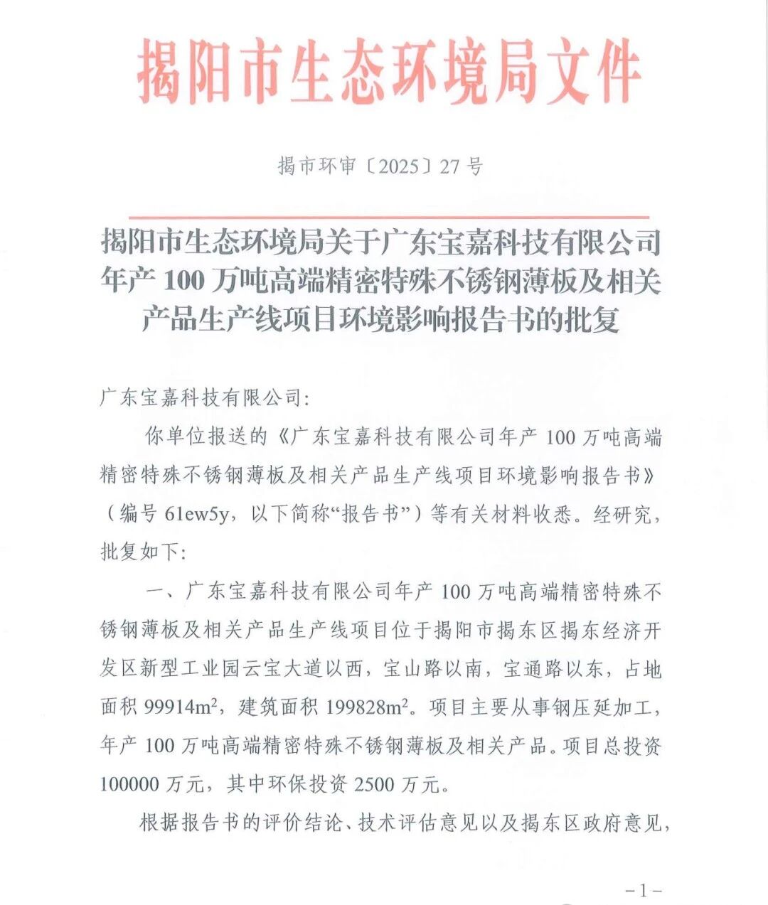 获批!广东宝嘉年产100万吨不锈钢冷轧项目进展→