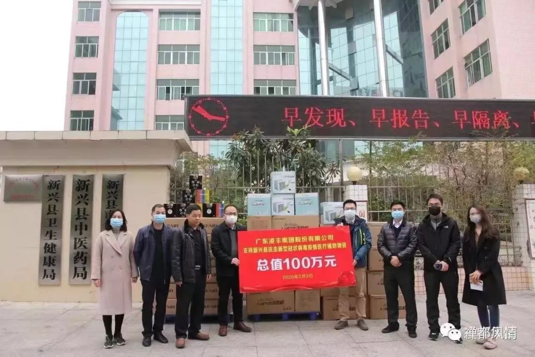 广东凌丰集团董事叶逾先生代表该集团向新兴县疫情防控指挥部捐赠一批快速电热水壶、多用途室内空气滤清器及保温杯等总价值为100万元的医疗辅助物资,用于支持新兴县各镇乡村医疗站及县各联合防疫检查站等本地抗击新型肺炎疫情一线机构,并向奋战在防疫一线的医护人员表达深切的慰问之情。叶逾先生表示,希望通过捐赠防疫辅助器材的方式,让抗击疫情相关人员感受到凌丰集团的关爱和温暖。